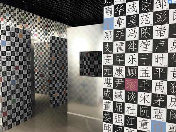 观众可以在遍布汉字的墙上寻找属于自己的姓氏。